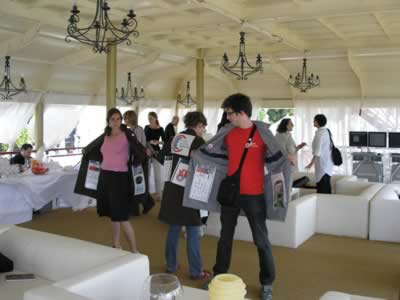 Sur l'invitation du gardien du vestiaire de l'Arsenale, nous disposons "inserts" et badges afin que chacun en dispose librement.